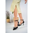 GİMER - Kadeh Ökçeli Arkası Kapalı Taşlı Siyah Saten Kadın St... Siyah