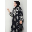Giral Dokuma Viskon Elbise 1543 - Siyah Siyah