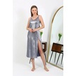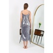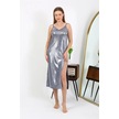 Giyim Kadın İp Askılı Uzun Parlak Micro Elbise Gecelik Gri Gri