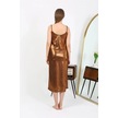 Giyim Kadın İp Askılı Uzun Parlak Micro Elbise Gecelik Kahverengi Kahve