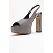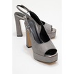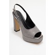 Glora Platin Simli Kadın Platform Topuklu Abiye Ayakkabı Platin