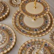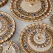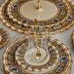 Glore Gisele Altın Yaldızlı Cam 28 Parça Çay İkram Takımı Full Set Renkli