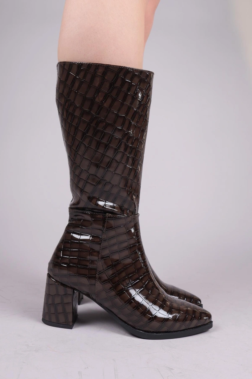 Gloria Kroko Yarım Çizme Kahverengi-8370 Kahverengi