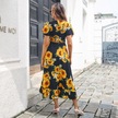 Gmxıa Kadın Moda Yaz Bahar Çiçek Baskı Kısa Kollu V Yaka Yüksek Bel Günlük Elbiseler Yeşil