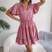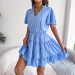 Gmxıa Kadın Modası Düz Renk Baskılı Yaz Bahar Kısa Kollu V Yaka Bol Günlük Elbiseler Mavi