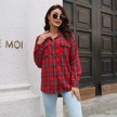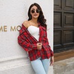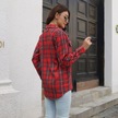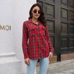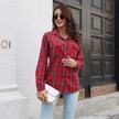 Gmxıa Kadın Modası Günlük Ekose Baskı Uzun Kollu Polo Yaka Bluzlar Ve Gömlekler Kırmızı