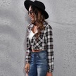 Gmxıa Kadın Modası Günlük Ekose Baskı Uzun Kollu Polo Yaka Bluzlar Ve Gömlekler Siyah