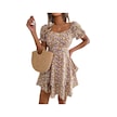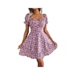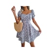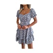Gmxıa Yaz/ilkbahar Kadın Modası Dar Kesim Kare Yaka Kısa Kollu Elbise Mavi