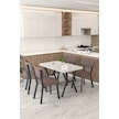 Gnr 70x110cm Sabit Beyaz Mutfak Masası Takımı, Yemek Masası, 4 Modern Kahverengi Sandalye Kahverengi