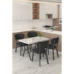 Gnr 70x110cm Sabit Beyaz Mutfak Masası Takımı, Yemek Masası, 4 Modern Siyah Sandalye Siyah
