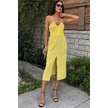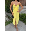 Göğsü Aksesuarlı Önü Yırtmaçlı Elbise 2899 Altın