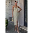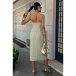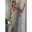Göğsü Aksesuarlı Önü Yırtmaçlı Elbise 2899 Çağla