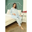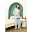 Göğüs Dantel Detaylı Kadın Hamile Pijama Takımı 1031 Mavi