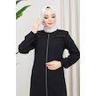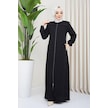 Medine İpeği Mevlana Kesim Cepli Kuşaklı Bol Büyük Beden Ferace Siyah