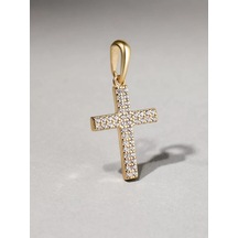 Gold Plaza Jewelry Taşlı Haç Kolye Ucu, 925 Ayar Gümüş, Zincirle Birlikte 179017215 Altın Rengi