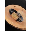 Gold Renk Metal Ağaçlı Tasarım Siyah Renk Deri Erkek Bileklik Çok Renkli