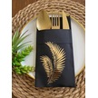 Gold Yaldızlı Siyah Yaprak Cepli Peçete 12 lı 40x40