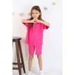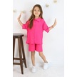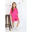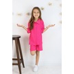 Gömlek Oversize Kız Şort Takım Canlı Fuşya