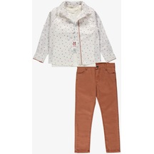 Gömlek Pantolon T-shirt Yaprak Desen 3 Parça Erkek Çocuk Takım