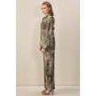 Kahverengi Yakası Fırfırlı Kuşaklı Saten Gömlek Kahve