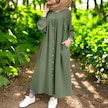 Gömlek Yaka Yazlık Keten Elbise Haki