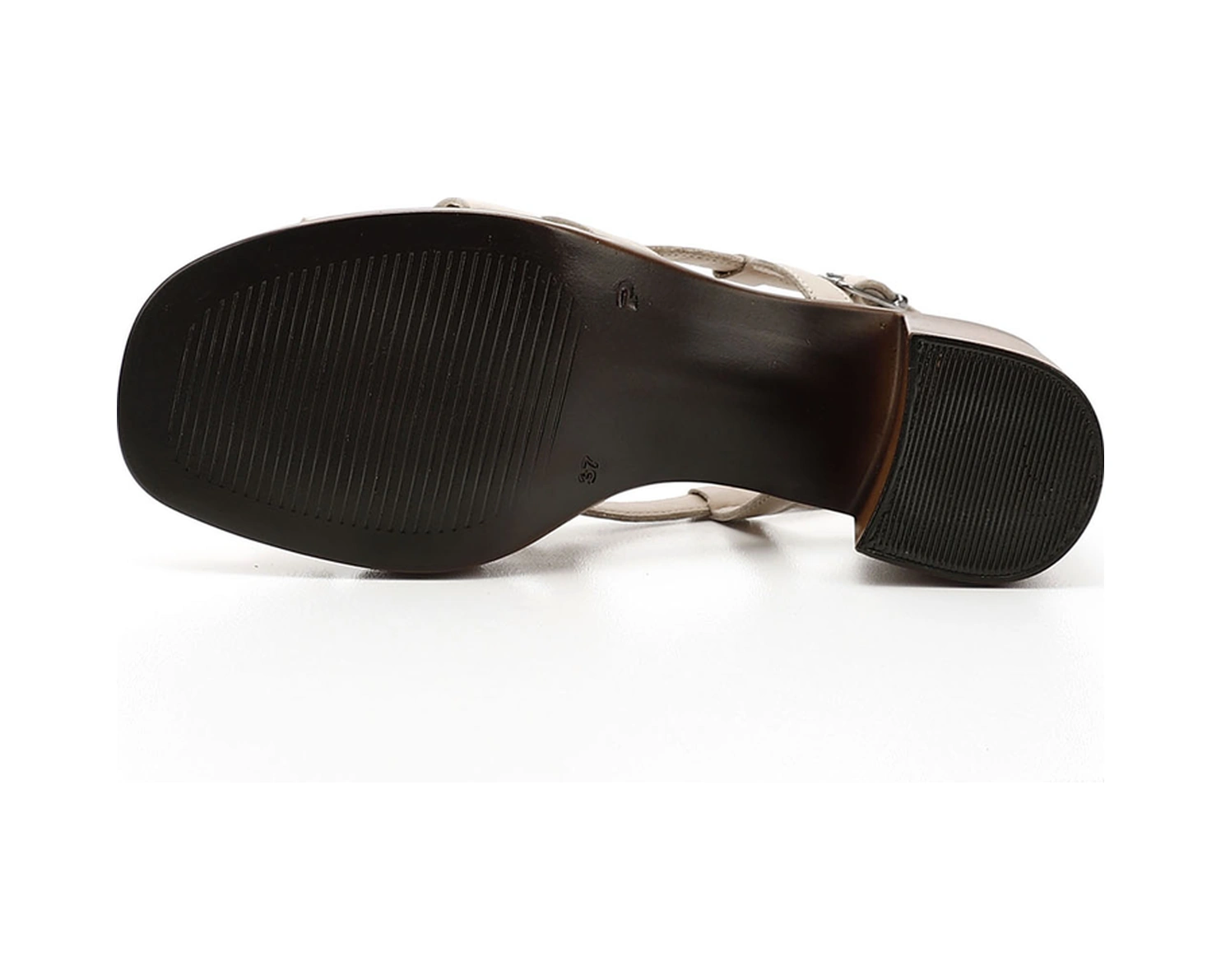 Gönderi R Kadın Bej Antik Örgü Bantlı Kalın Topuklu Hakiki Deri Sandalet Dyza70945310 Bej