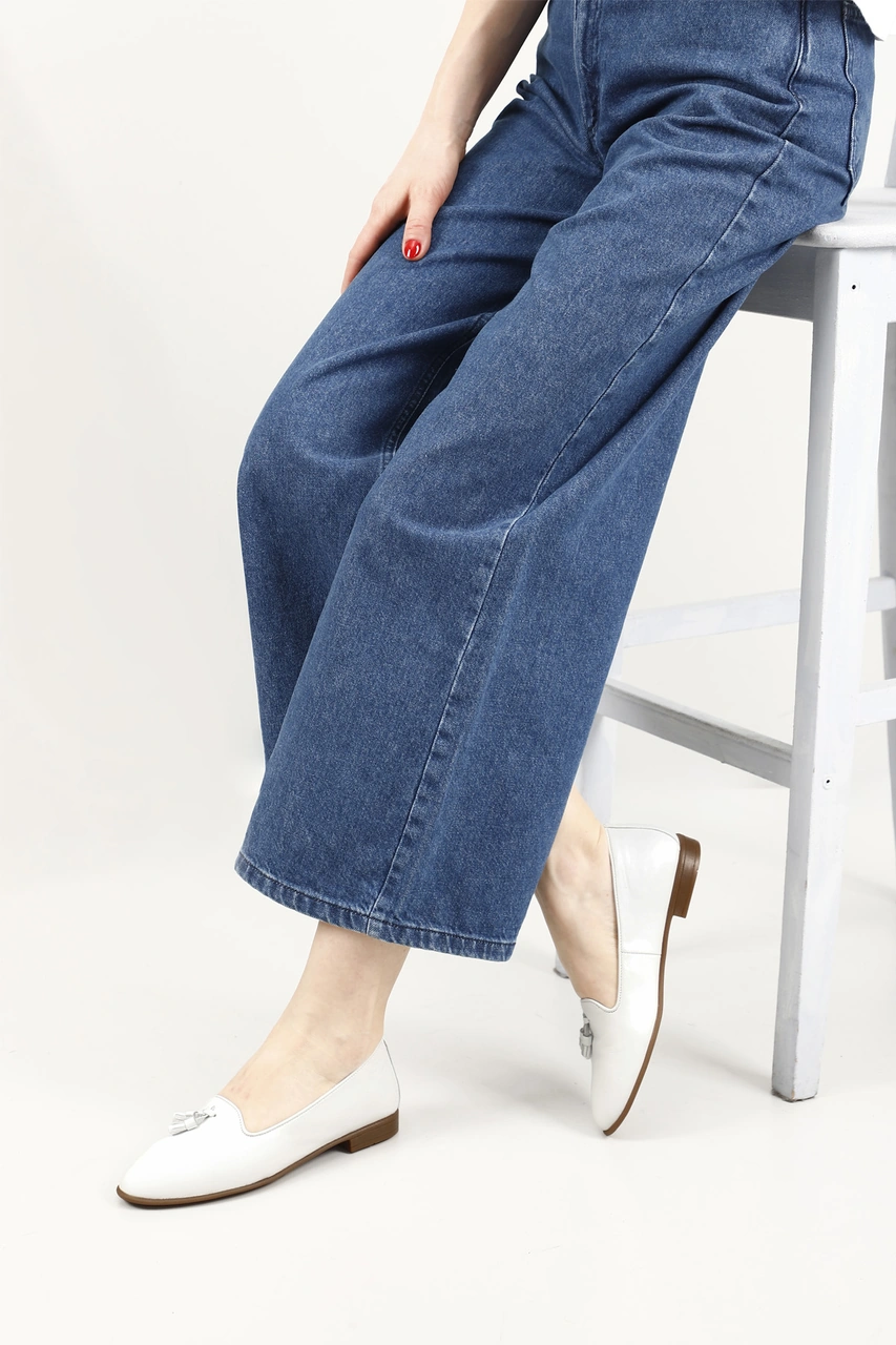 Gönderi R Kadın Beyaz Hakiki Deri Püsküllü Babet Gdza13424160 Beyaz