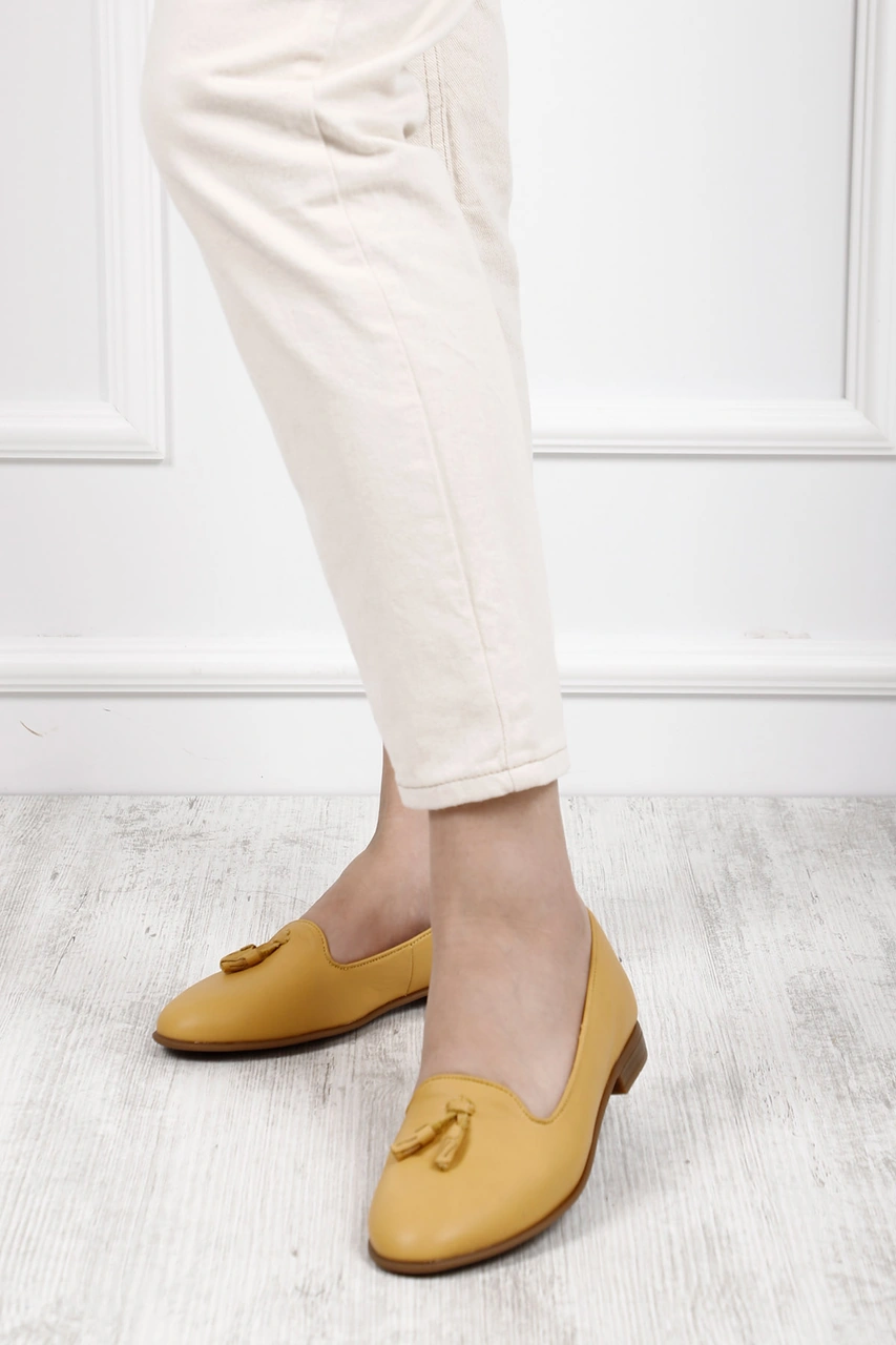 Gönderi R Kadın Hardal Hakiki Deri Püsküllü Babet Gdza13424160 Hardal