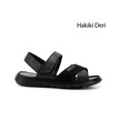 Gönderi R Siyah Cırtlı Çapraz Bantlı Hakiki Deri Sandalet Siyah