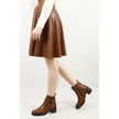 Gönderi R Taba Floter Fermuarlı Kalın Topuklu Hakiki Deri Bot Taba Floter