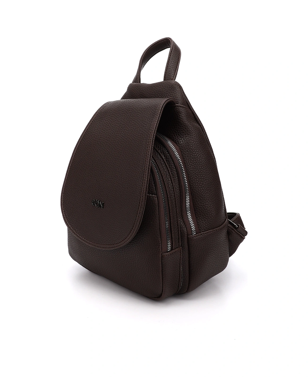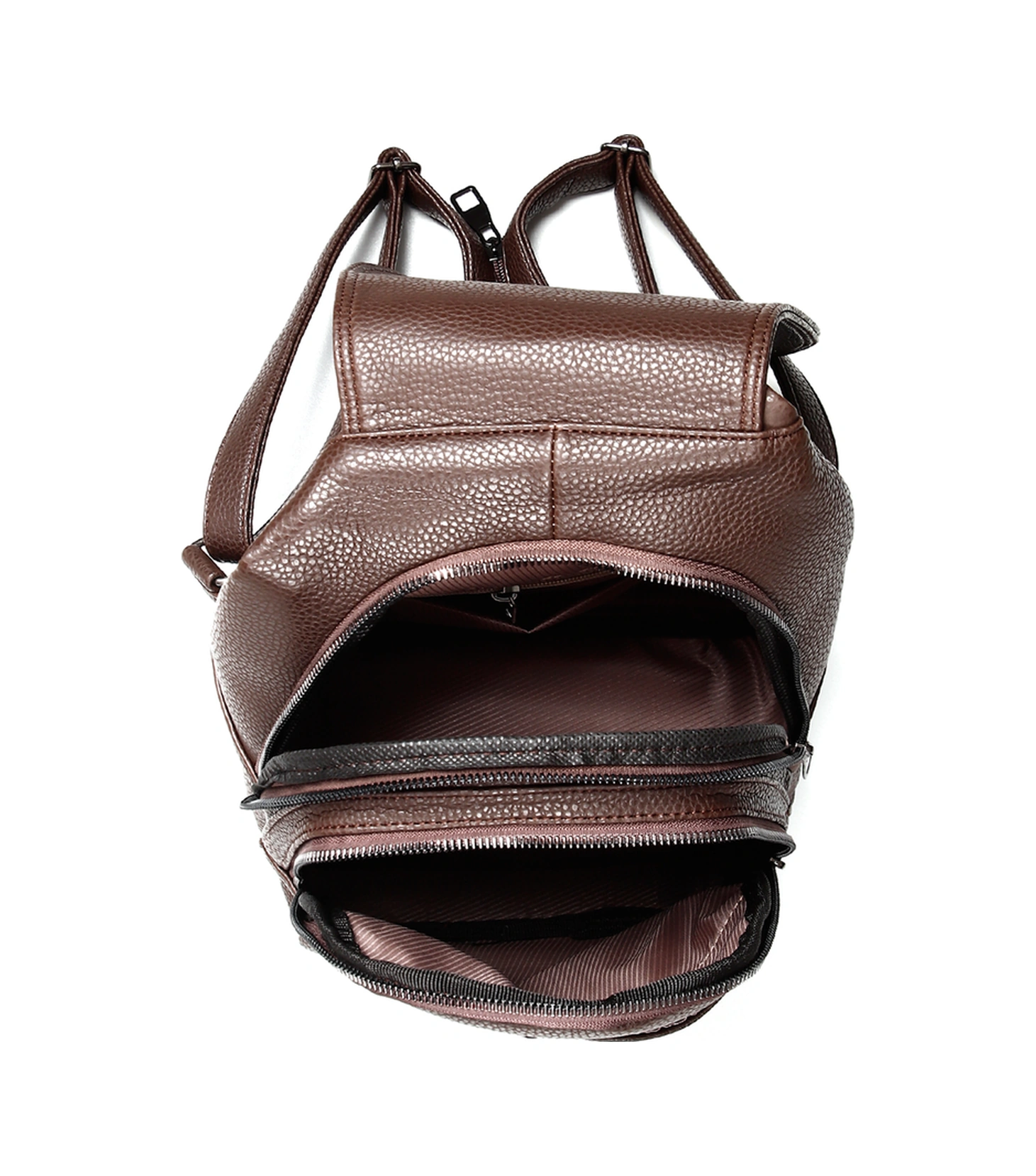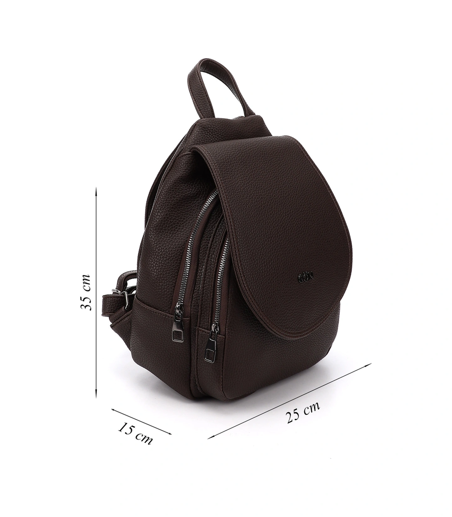 Fiyra S1 Kahve Renk Krinkıl Kumaş Dört Bölmeli Bayan Sırt Çantası-Kahverengi-Std