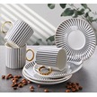 Gönül Porselen Çizgi Desen 6 Kişilik Kahve Takımı Beyaz
