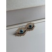 Göz Figürlü Nazar Boncuğu Detaylı Taşlı Küpe Altın Renk Kadın Çelik Takı Altın