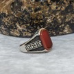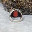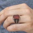 Grek Desenli Akik Taşlı 925 Gümüş Erkek Yüzük Beyaz