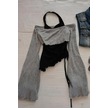 Gri Boyundan Bağlamalı Omuz Açık Y2k Uzun Kollu Crop-18329 Gri