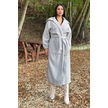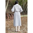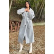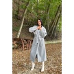 Gri Cepli, Balon Kol, Kemerli, Kalın Örgü Triko, Uzun Kaban Gri