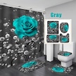Gri Çiçek Açan Çiçekler Gül Kelebek Duş Perdesi Seti Su Geçirmez Banyo Klozet Kapağı Banyo Kaymaz Mat Halı Halı Banyo Dekor 4 A Gri