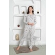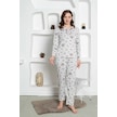 Gri Çiçek Desenli Büyük Beden Kadın Uzun Kol Anne Pijama Takımı - %100 Pamuk Penye Mevsimlik Gri Melanj