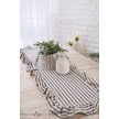 Gri Çizgili 40x125 Şık Tasarım Ekstra Büyük Fırfırlı Runner, %100 Keten Runner Bej