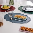 Gri Deri Placemats Mutfak Eşyaları Kahve Fincanı Pot İçin Düzensiz Şekil Su Geçirmez Ped Gri