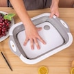Gri Derin Oluk Tasarımlı Kesme Tahtası Küf Önleyici Kaymaz Çok Fonksiyonlu Damlalıklı Sepet
