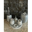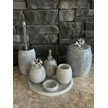 Gri Doğal Mermer Gümüş Mercan Aksesuarlı Oval 7,li Banyo Seti Beyaz
