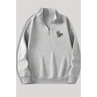 Gri Fermuarlı Dikyaka Sweatshirt- What - Kışık Şardonlu Kumaş Gri