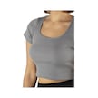 Gri Havuz Yaka Fitted/vücuda Oturan Kısa Kol Crop Tişört Gri