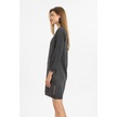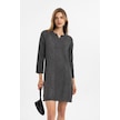 Gri İşlemeli Uzun Kollu Astarsız Pamuklu Kısa Elbise-gri