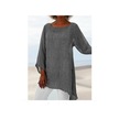 Gri Kadın Pamuklu Ve Keten Düz Renk Günlük Gömlek Düzensiz Uzun Kollu Tişört Gri