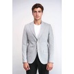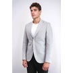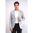 Gri Keten Dokulu Gold Renk Metal Düğmeli Slim Fit Erkek Blazer Ceket - Wessi Grey
