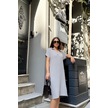 Grı Kısa Kol, Polo Yaka, Dokulu Kumaş, Basic Kalıp/kesim, Aerobin Rahat Midi Elbise Gri