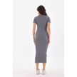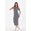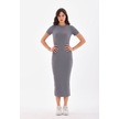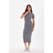 Gri Kısa Kollu Diz Altı Fitilli Esnek Kalem Elbise - 115 Cm Gri