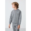 Gri Melanj Pamuklu Kalın İçi Tüylü Yumuşak Dokulu Standart Fit Baskılı Erkek Çocuk Eşofman Takım - 11257 Gri Melanj
